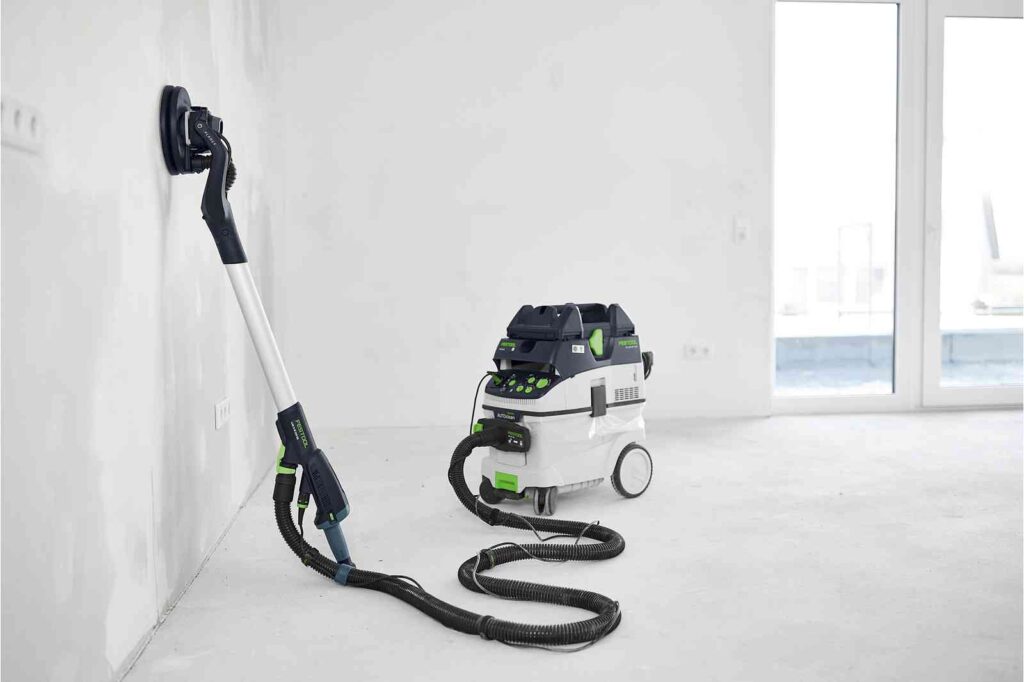 Az univerzális segítő minden fal- és mennyezetcsiszolási feladathoz: ismerje meg a Recycolor Kft. által ajánlott FESTOOL PLANEX M-et. Ez a hosszú szárú csiszoló azonnal használatra kész a szállítótáskából kivéve, és excentrikus csiszolómozgásával kifogástalan, sima felületeket hoz létre falakon és mennyezeteken egyaránt. Az állítható szívóerő lehetővé teszi a fáradságmentes munkavégzést, így tehermentesíti a karokat és a hátat. Az 1,4 méteres munkahossz tökéletesen illeszkedik a standard szobamagasságokhoz, míg a T-markolat kiterjeszti a munkavégzés hatótávolságát.