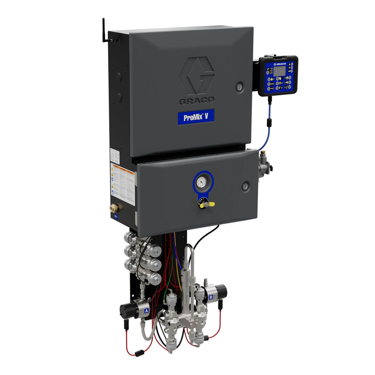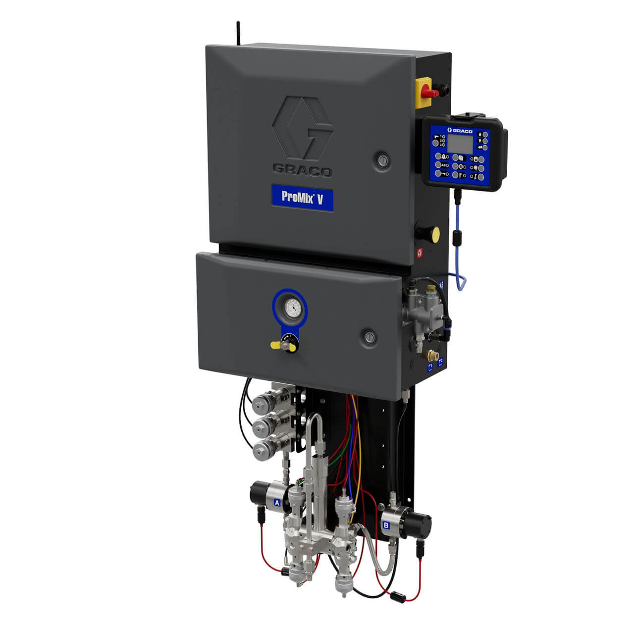 A Graco ProMix V többkomponensű keverőrendszer a festékipar egyik leginnovatívabb és legsokoldalúbb megoldása, amely forradalmasítja a többkomponensű bevonatok adagolásának, keverésének és felhasználásának módját. A rendszer célja, hogy maximalizálja a hatékonyságot, csökkentse a selejtet és optimalizálja az anyagfelhasználást – mindezt kompromisszummentes precizitással.